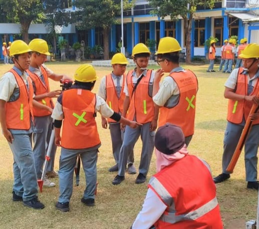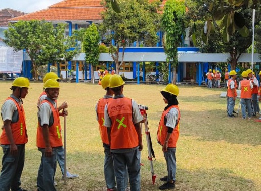 Kediri, 30 Juli 2025 – Siswa kelas 11 jurusan Teknik Konstruksi Perumahan (TKP) SMKN 1 Kota Kediri melaksanakan kegiatan pembelajaran materi ukur tanah di Lapangan Upacara depan. Kegiatan ini bertujuan untuk memberikan pengalaman langsung kepada siswa dalam materi ukur tanah dan memahami konsep ukur tanah.