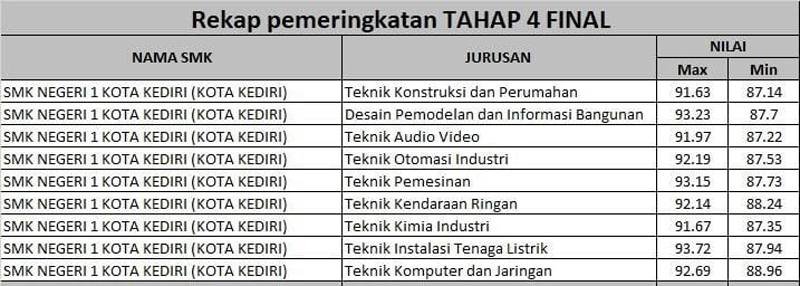 Berikut rekapan nilainya: