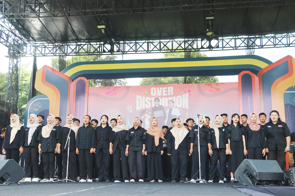 Over Distortion, band hardcore punk asal Yogyakarta yang dikenal dengan energi tinggi dan lagu-lagu bertema solidaritas serta semangat perlawanan, berhasil menghipnotis ribuan penonton, terutama siswa dan seluruh warga SMKN 1 Kota Kediri. Penampilan mereka di panggung gembira membuat suasana semakin riuh dan penuh semangat, seolah menyuntikkan energi baru bagi generasi muda untuk terus berprestasi.