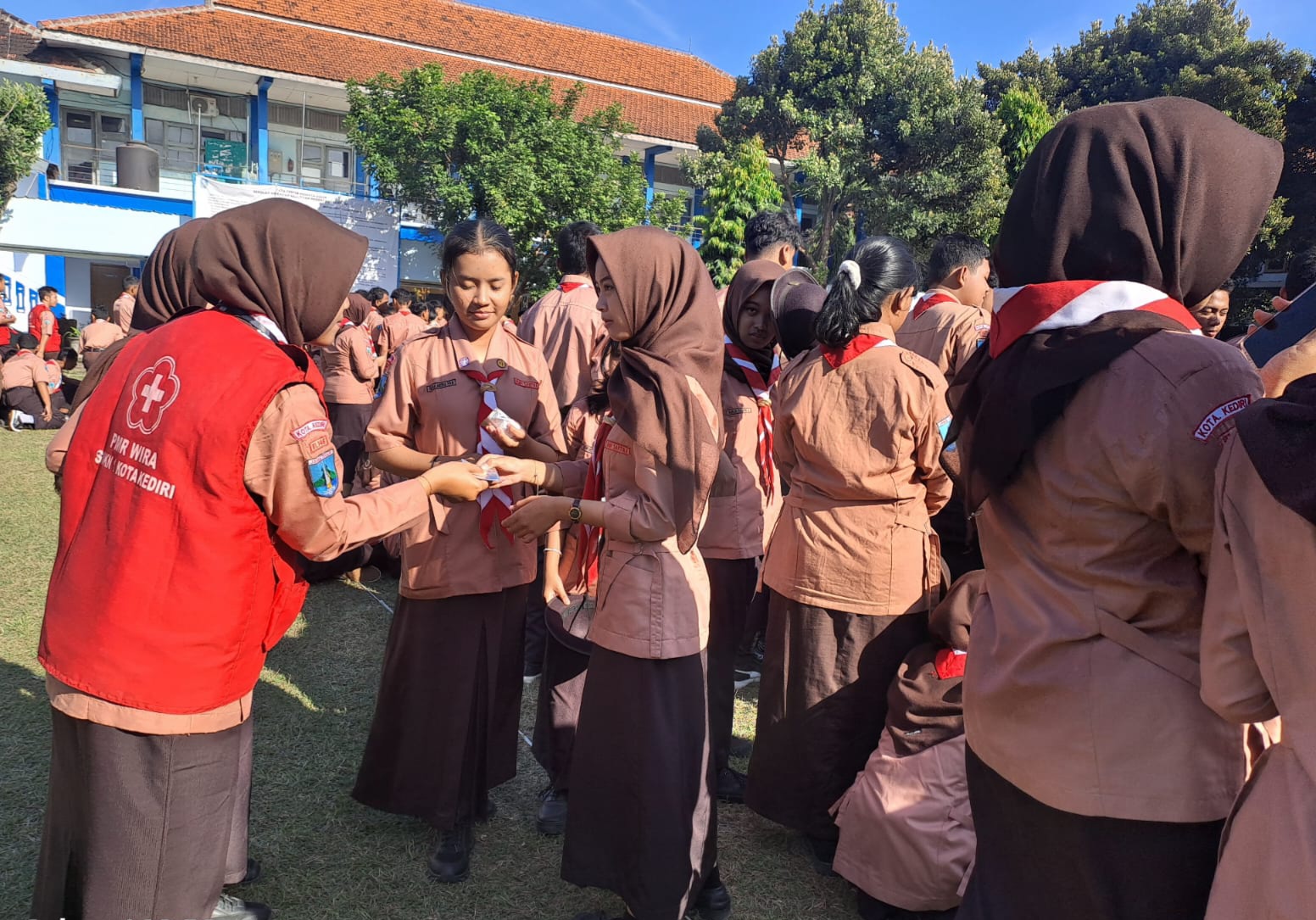 Kediri, 16 Agustus 2025 – Peduli terhadap kesehatan remaja putri sebagai calon generasi penerus, Palang Merah Remaja (PMR) SMK Negeri 1 Kota Kediri mengambil inisiatif strategis. Usai Apel Hari Pramuka di lapangan upacara sekolah, mereka membagikan Tablet Tambah Darah kepada seluruh siswi, sebagai upaya nyata mencegah anemia dan menjaga kesehatan jangka panjang.