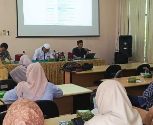 Rapat dibuka dengan pembahasan teknis oleh kepala sekolah dan diikuti oleh sesi presentasi mengenai jadwal serta panduan pelaksanaan tes. Bapak Ibu guru tampak serius mengikuti kegiatan, yang ditandai dengan diskusi aktif dan pencatatan penting.