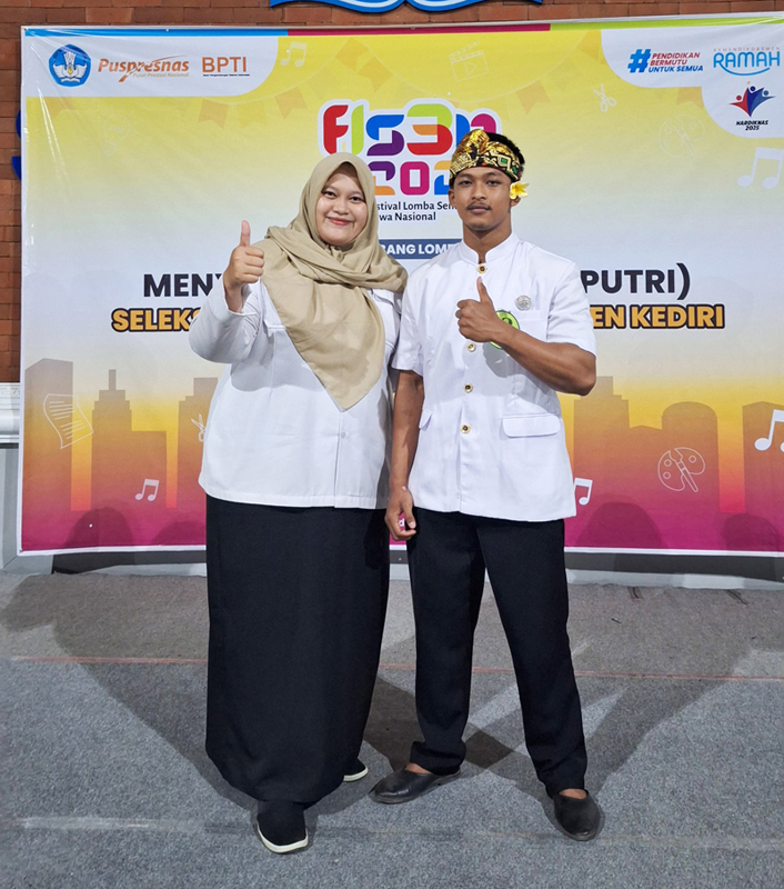 Kediri, 22 Mei 2025 – Sekolah Menengah Kejuruan Negeri (SMKN) 1 Kediri kembali menorehkan prestasi gemilang di Kota Kediri. Restu Satria Putra Wardhana (kelas X TKJ 2), berhasil meraih *Juara 1 Kategori Solo Vokal Putra pada Festival dan Lomba Seni Sastra Siswa Nasional (FLS2N) 2025 yang digelar di SMA Negeri 2 Kediri pada 21 Mei 2025. Penghargaan ini semakin mengukuhkan SMKN 1 Kediri sebagai salah satu sekolah unggulan dalam pengembangan bakat seni siswa.