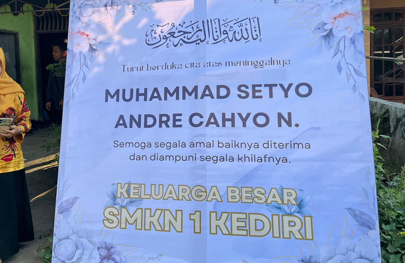 Kediri, 4 Juni 2025 — Suasana duka menyelimuti keluarga besar SMKN 1 Kota Kediri atas berpulangnya salah satu siswa terbaik, Muhammad Setyo Andre Cahyo N. dari kelas XI TKR 3. Almarhum wafat pada Kamis, 4 Juni 2025, setelah cukup lama menjalani perawatan karena sakit yang dideritanya.