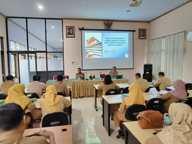 Kediri, 27 Mei 2025 – SMKN 1 Kota Kediri menggelar Rapat Koordinasi (Rakor) Akhir Tahun Ajaran dan Persiapan Awal Tahun Ajaran Baru 2025/2026. Kegiatan ini bertujuan untuk mengevaluasi capaian tahun ajaran sebelumnya dan mempersiapkan diri untuk tahun ajaran baru.