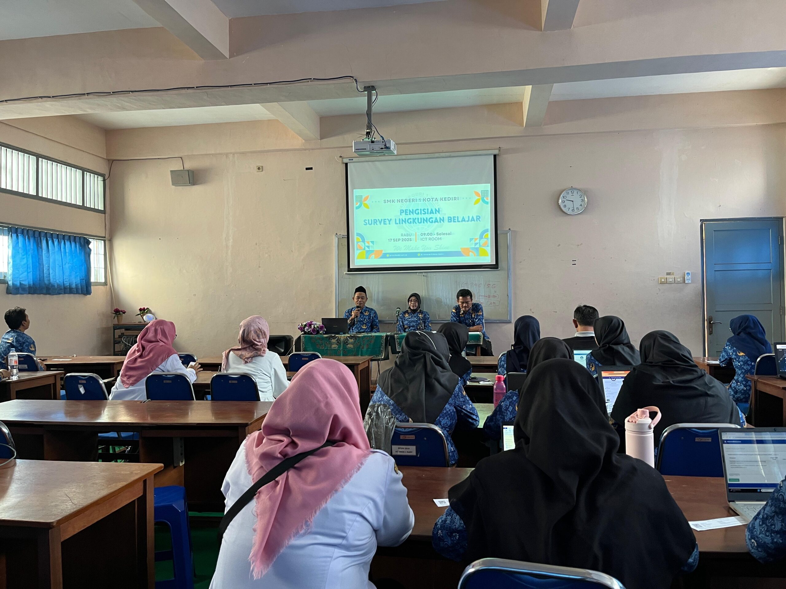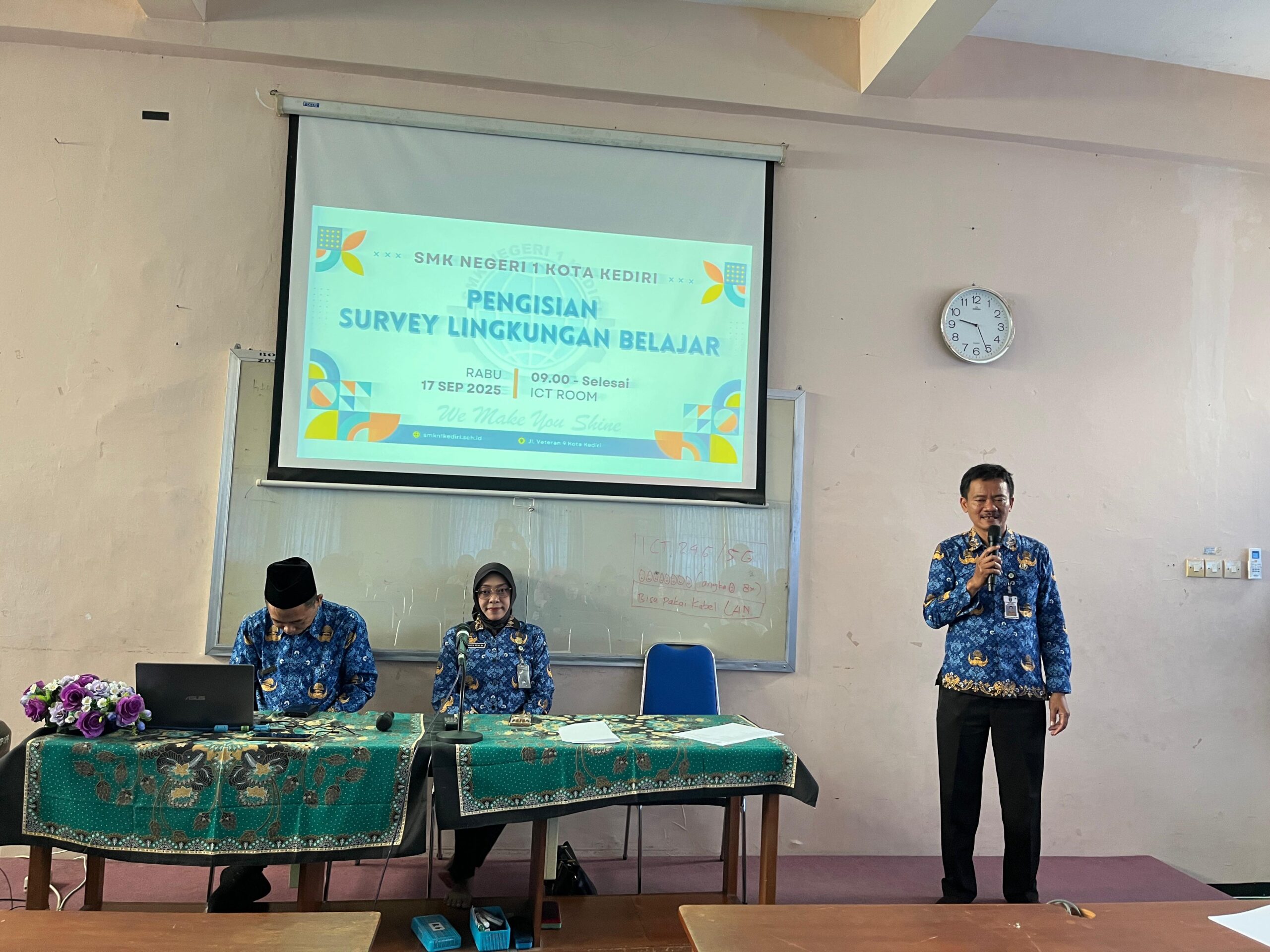 Kediri, 19 September 2025 – Dalam rangka mendukung peningkatan kualitas pendidikan nasional, SMK Negeri 1 Kota Kediri melaksanakan Survey Lingkungan Belajar secara serentak pada Rabu, 16 September 2025. Kegiatan yang diamanahkan oleh Kementerian Pendidikan, Kebudayaan, Riset, dan Teknologi (Kemendikbudristek) ini bertujuan untuk memetakan kondisi lingkungan belajar yang objektif dan komprehensif.